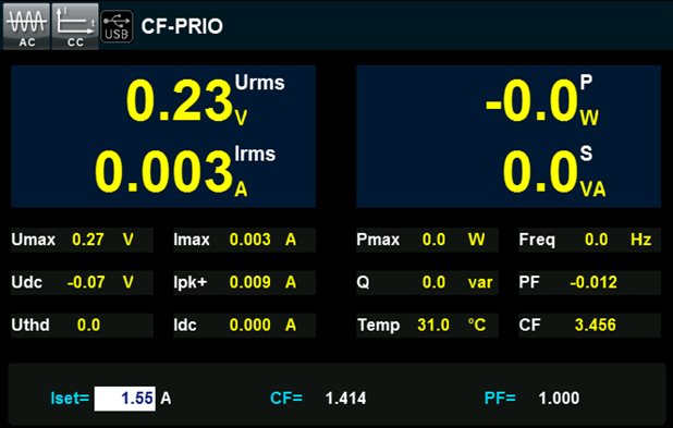 ♦ 可量測Vrms/Vpk/Vdc/Irms/Ipk/Idc/W/VA/VAR/CF/PF/FREQ