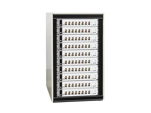 利用傳統示波器的現有機架空間可將通道數增加 6 倍。 5 系列緊湊型混合信號示波器在2U 空間,能提供 8 條通道加一個輔助觸發輸入通道(每條通道的成本較低)。 每條 FlexChannel™ 輸入通道均可作為 1 條模擬通道或 8 條數字通道。
