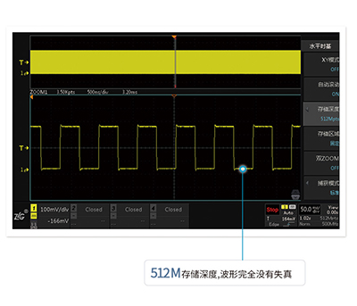 存儲深度等于采樣率乘以采樣時間,512M大存儲深度,長時間捕獲波形,依然不會出現波形失真。