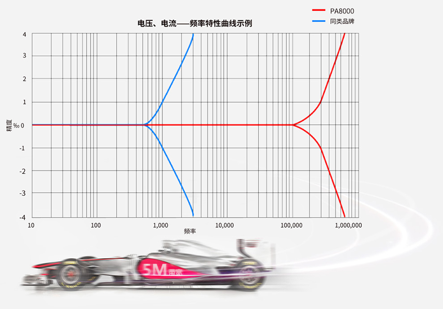 PA8000是行業內為數不多的一款具有0.01%精度,電流與電壓頻率帶寬高達5MHz的功率分析儀,完全滿足未來以SiC為代表的高速開關設備的功率測量。