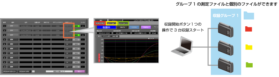 收錄間隔、收錄條件(開始條件/停止條件的選擇)、 收錄方式(連續(xù)/1h/24h的選擇)、報(bào)警設(shè)定(Off/等級(jí)的選擇)、PC數(shù)據(jù)存儲(chǔ)位置 |